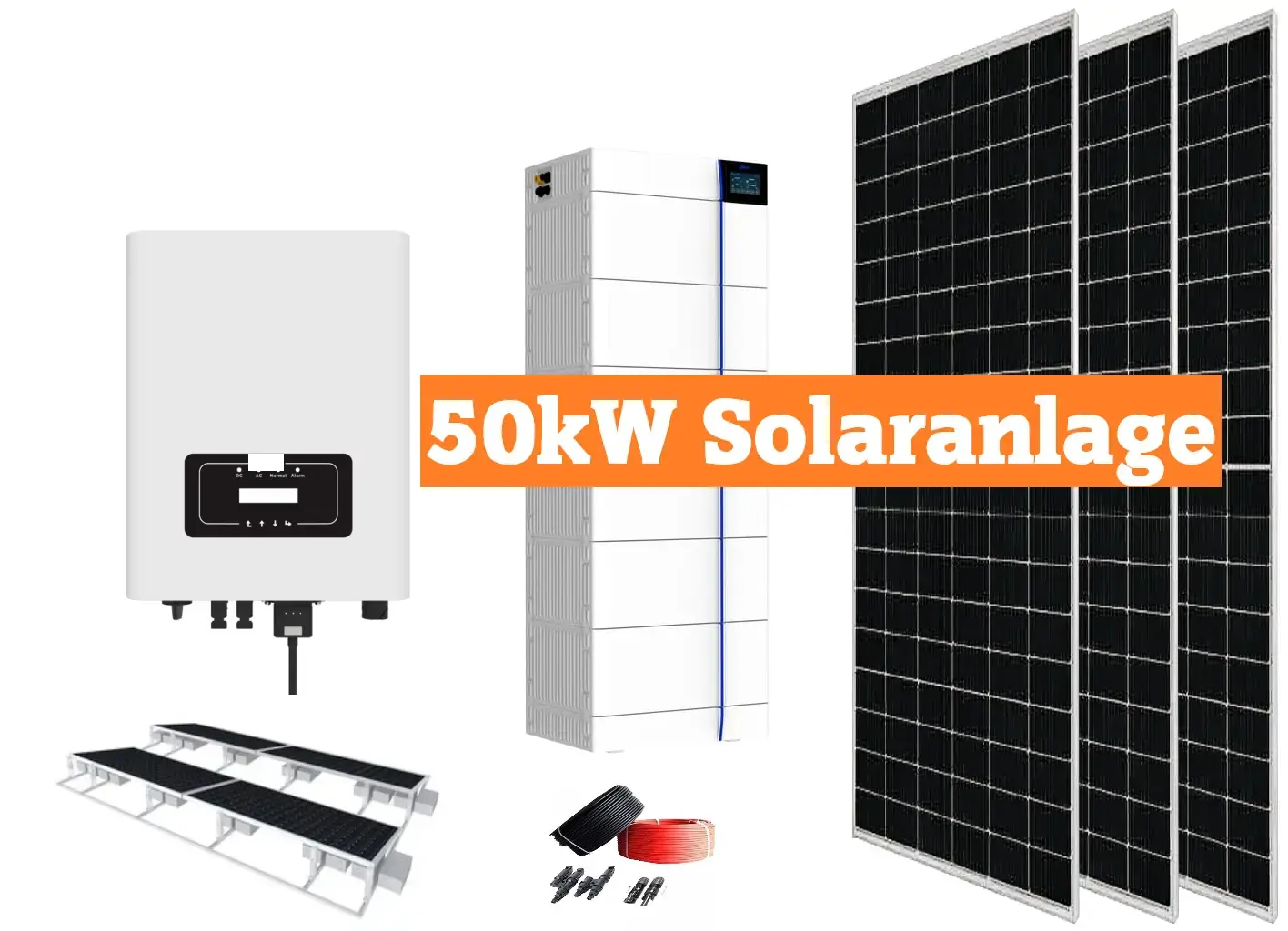 Photovoltaik-Komplettanlage + 50 kWp, Speicher, Solarmodule und Montagesystem